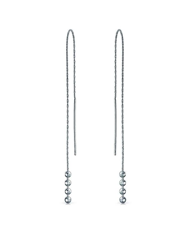 Bling Jewelry Geometric Minimalist Elegance Long Thin Chain Simple Four Bead Ball Threader Earrings .925 Sterling Silver