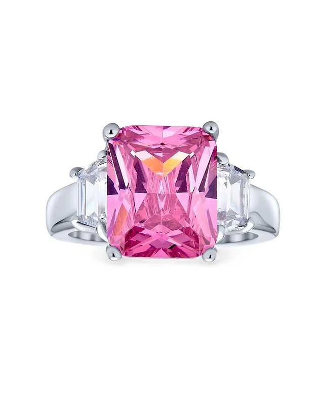 Bling Jewelry Timeless Classic Style 2CT Rectangle Clear Emerald Cut Three Stone Past Present Future Promise Engagement Ring For Women Sterling Silver