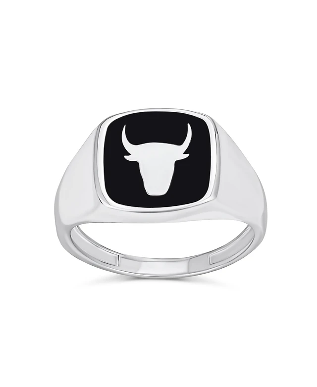Bling Jewelry Signet Black Natural Onyx Square Western Texas Longhorn Buffalo Cow Antelope Skull Bull Ring Sterling Silver