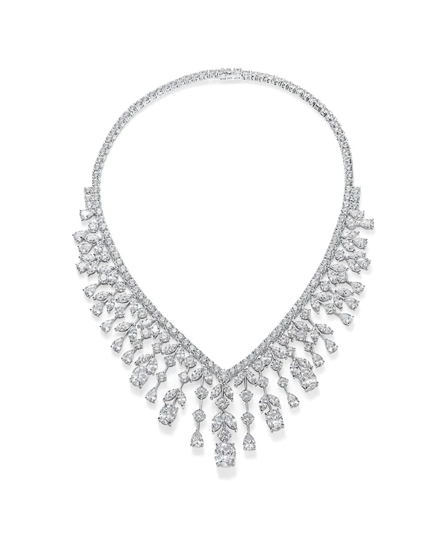 Bling Jewelry Art Deco Leaf Teardrop Cz Choker Necklace and Earrings Jewelry Set Silver