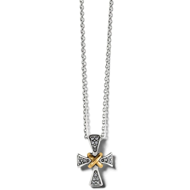 Diamond Cross Necklace 3/8 ct tw Round, Baguette & Princess 10K Yellow Gold 18"