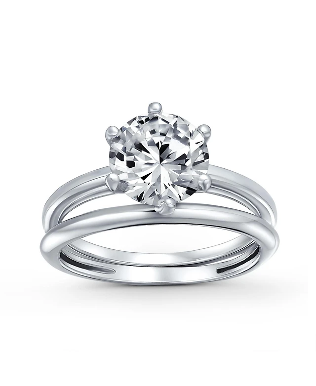Bling Jewelry Classic 1.75CT Cz Round Solitaire Promise Ring Cubic Zirconia Pave Band .925 Sterling Silver