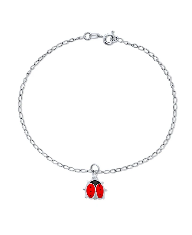 Bling Jewelry Lucky Red Ladybug Charm Anklet Ankle Bracelet Sterling Silver 9.75 Inch
