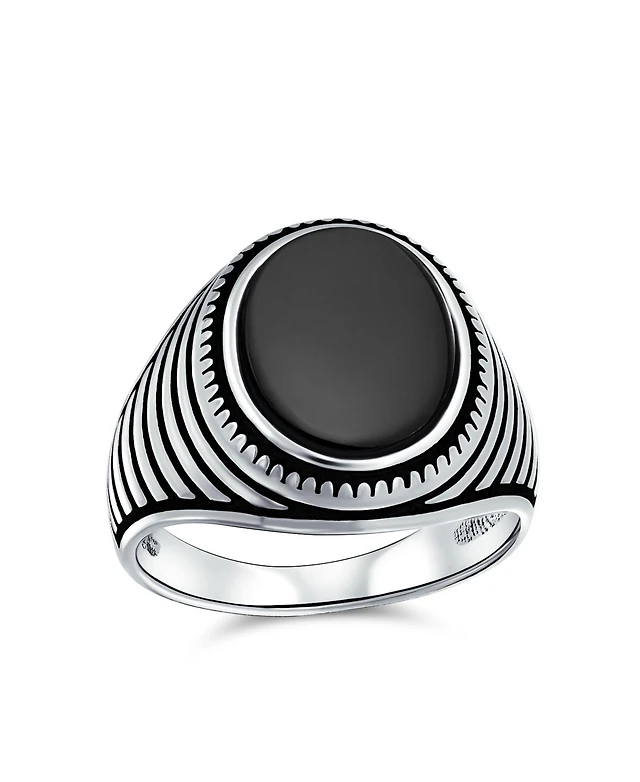 Bling Jewelry Retro Grooved Silver Ring with Black Onyx Square Signet Sterling Band