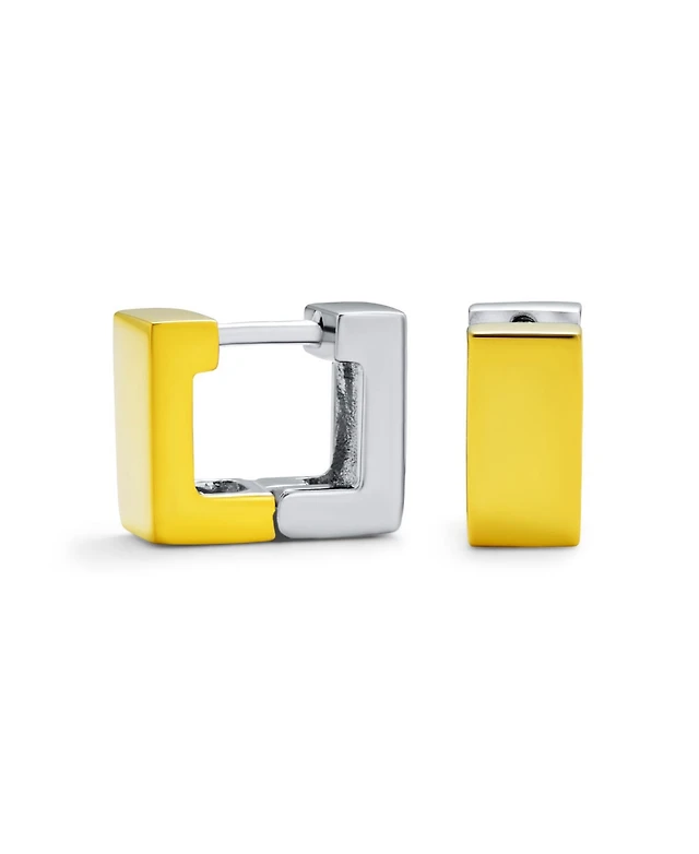 Bling Jewelry Contoured Square Huggie Hoop Earrings Sterling Silver