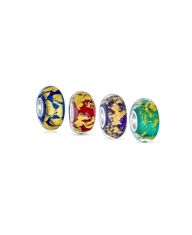 Bling Jewelry Nautical Glass Charm Bead Set Silver Core Multi-Color Murano Fish & Whale Design