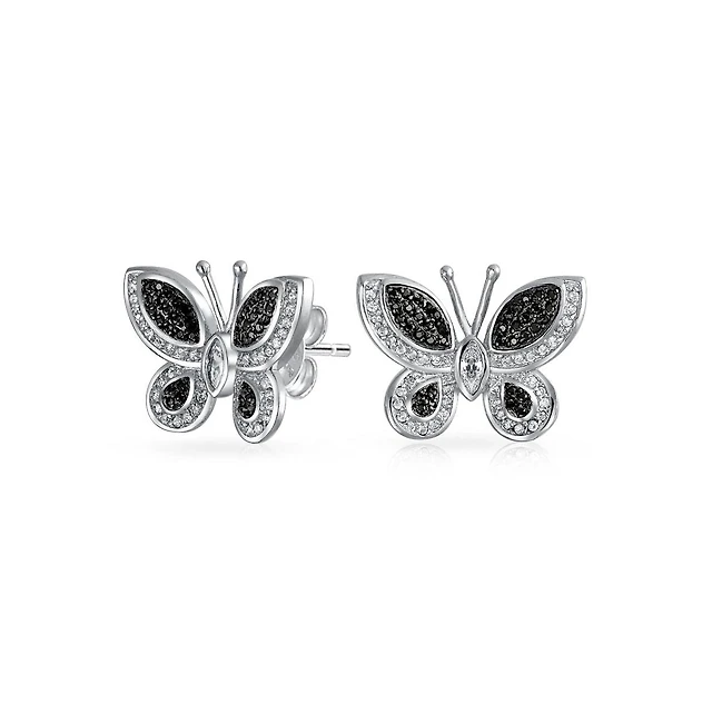 Bling Jewelry Black Square Kite Shaped Cz Micro Pave Cubic Zirconia Stud Earrings .925 Silver Screw back 7-12MM