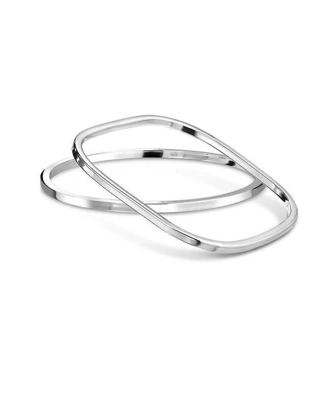 Bling Jewelry Plain Simple Dome Edge Layering Stacking Thin 2MM Shinny Sterling Silver Bangle Bracelet
