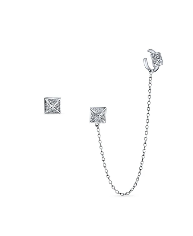 Bling Jewelry Geometric Square Pyramid Chain Cartilage Ear Cuff Wrap Earring Pave Cz Stud Helix Earring Stud Set .925 Sterling Silver