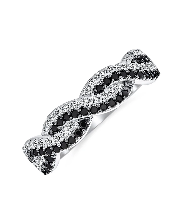 Bling Jewelry Two Tone Intertwined Twist Knot 1/2 Eternity Black & White Pave Cubic Zirconia Cz Infinity Band Ring .925 Sterling Silver