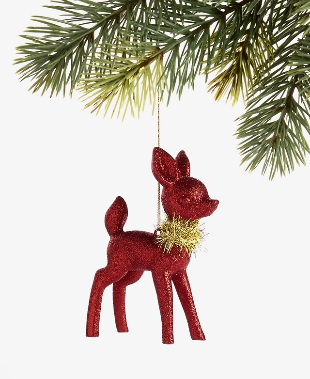 Holiday Lane Christmas Glitters Red Deer With Scarf Ornament, Macy's Exclusive