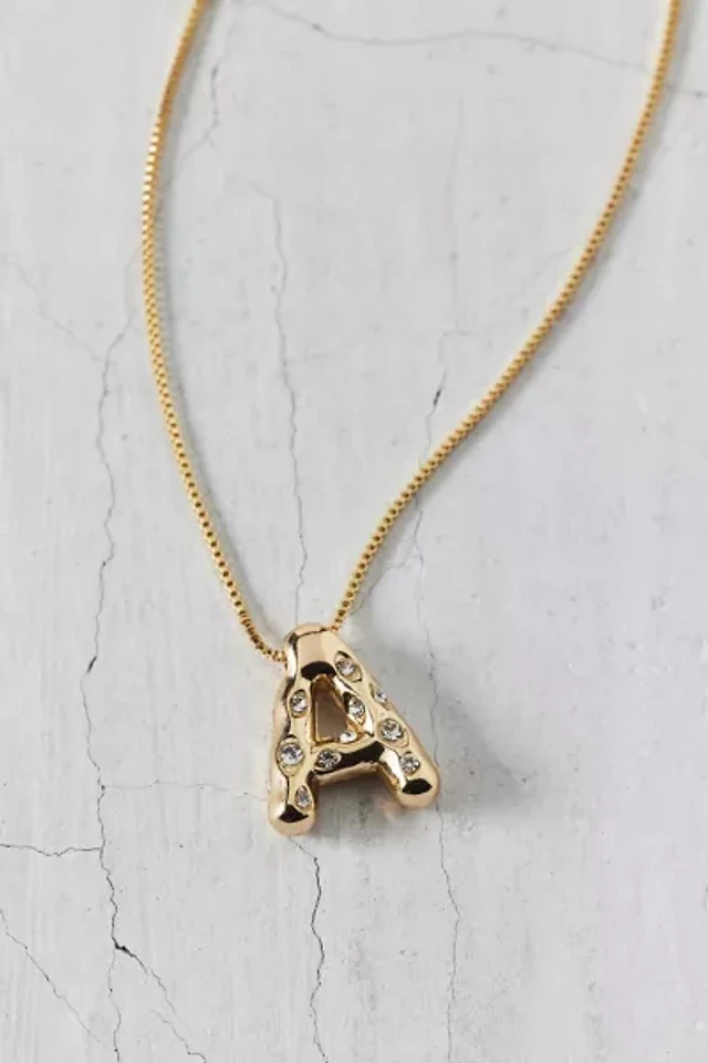 14k Gold Plated Rhinestone Bubble Initial Charm Necklace