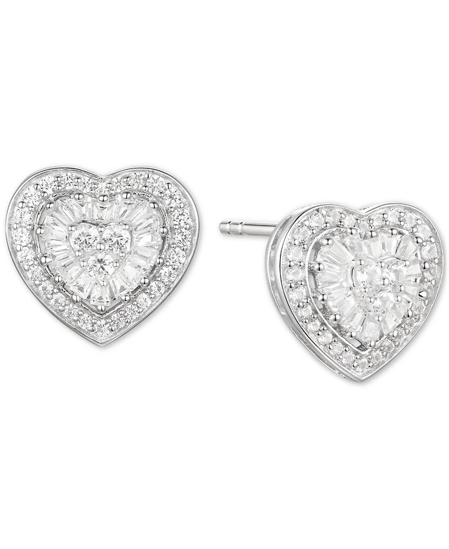 Diamond Baguette Heart Stud Earrings (1/2 ct. t.w.) 14k Gold , White or Rose