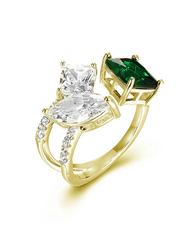Cubic Zirconia Seven Stone S-Curve Ring 14k Gold-Plated Sterling Silver