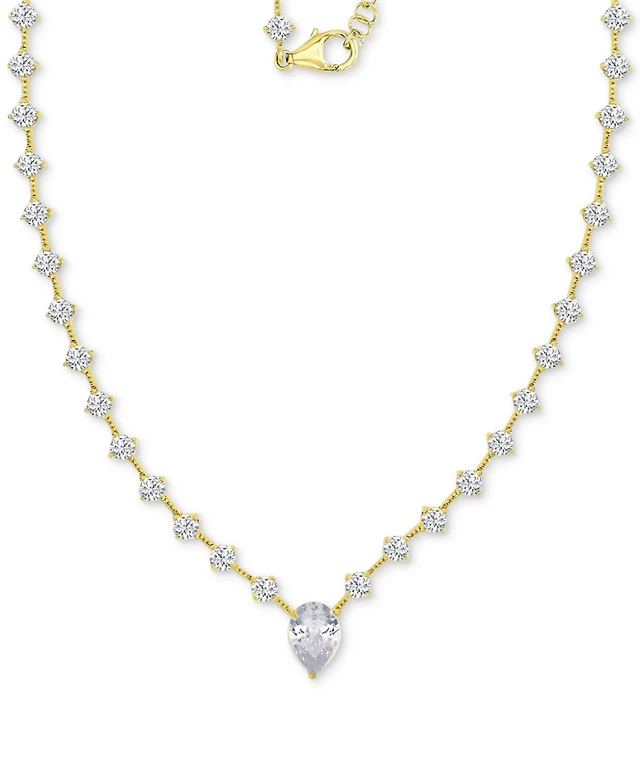 Cubic Zirconia Fancy 20" Statement Necklace in 14k Gold-Plated Sterling Silver