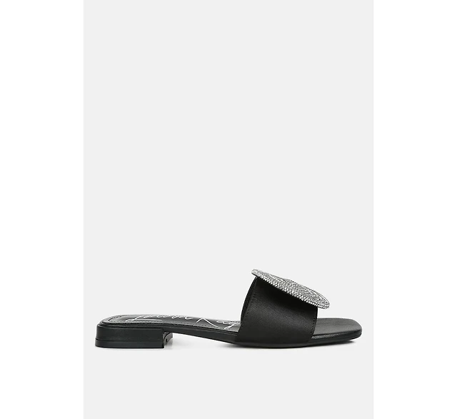 ollilie rhinestones embellished brooch slip on sandals