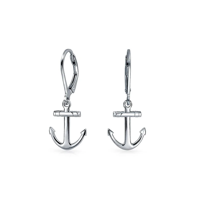Bling Jewelry Nautical Anchor Dangle Earrings in 14K Gold Plated Sterling Silver