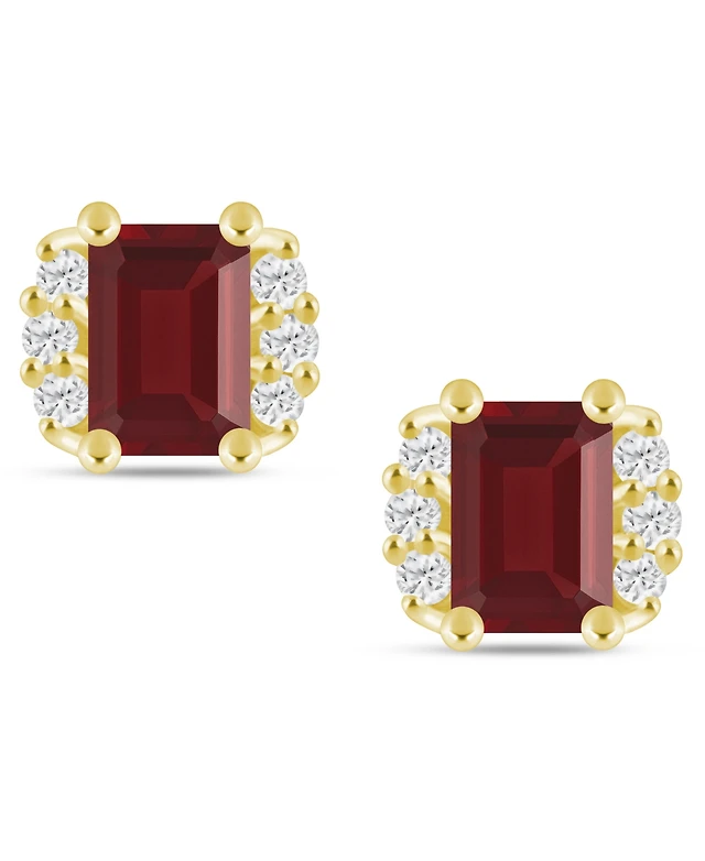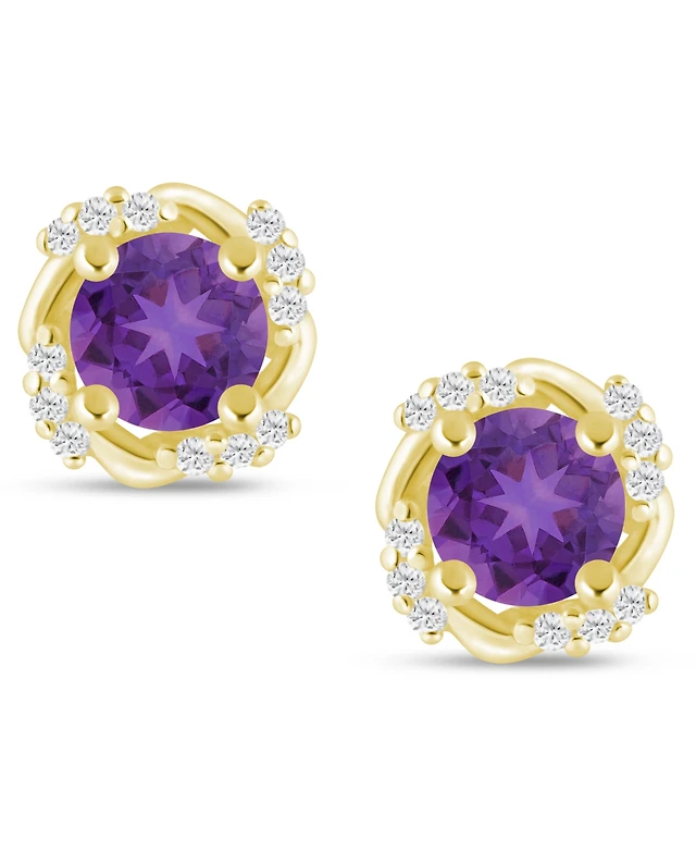 Gemstone & Created White Sapphire Halo Stud Earrings (1/4 ct. t.w.) 10k Yellow Gold