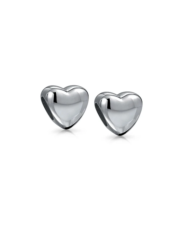 Bling Jewelry Set of 2 Simple Heart Bead Charm Sterling Silver for European Bracelet