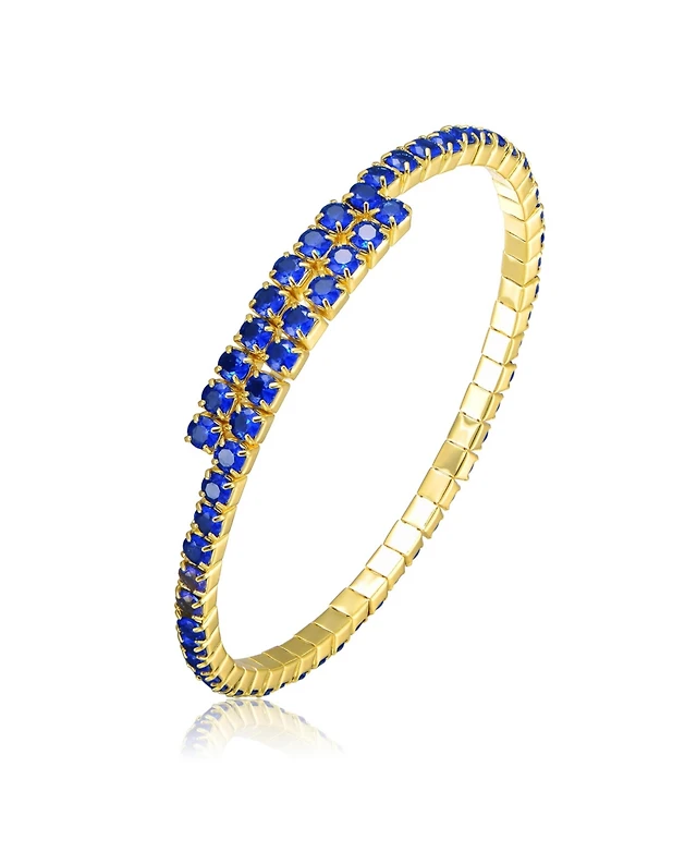 Rachel Glauber 14K Gold Plated with Multi-Colored Cubic Zirconia Bangle Bracelet