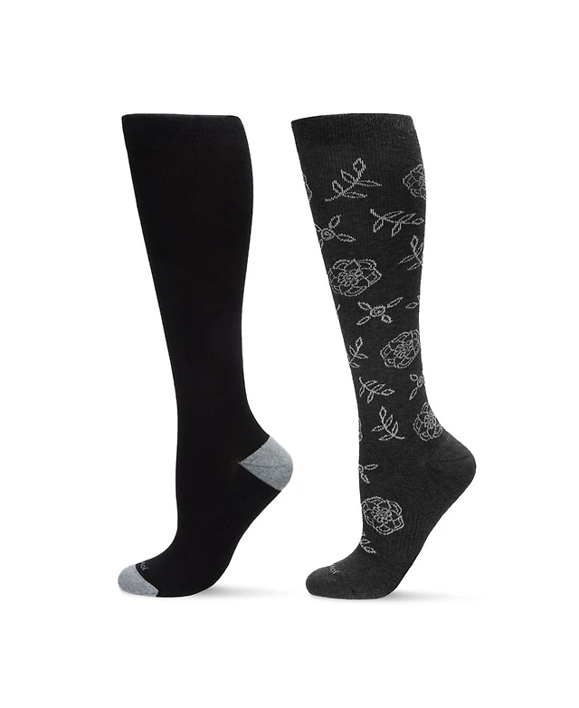 Muk Luks Women's 2 Pack Fleece Lined Knee High Socks, Blk/Dkgr, S/M