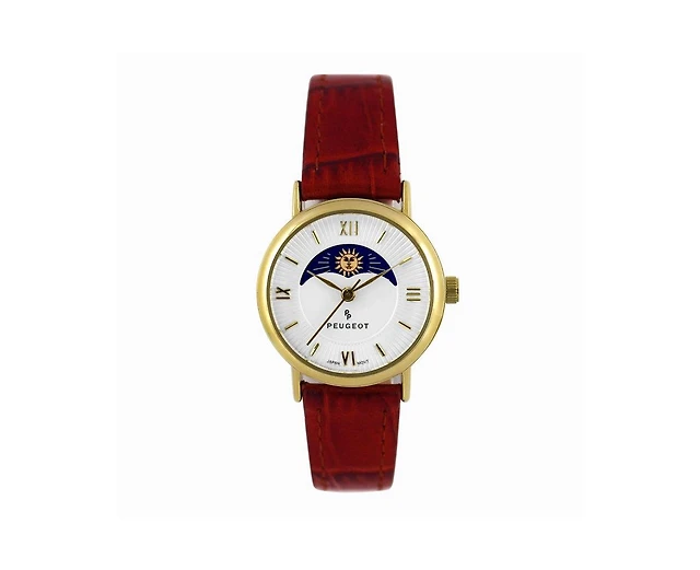 Peugeot Women's Rectangular Gold-Tone Case Watch Glossy Red Leather Strap