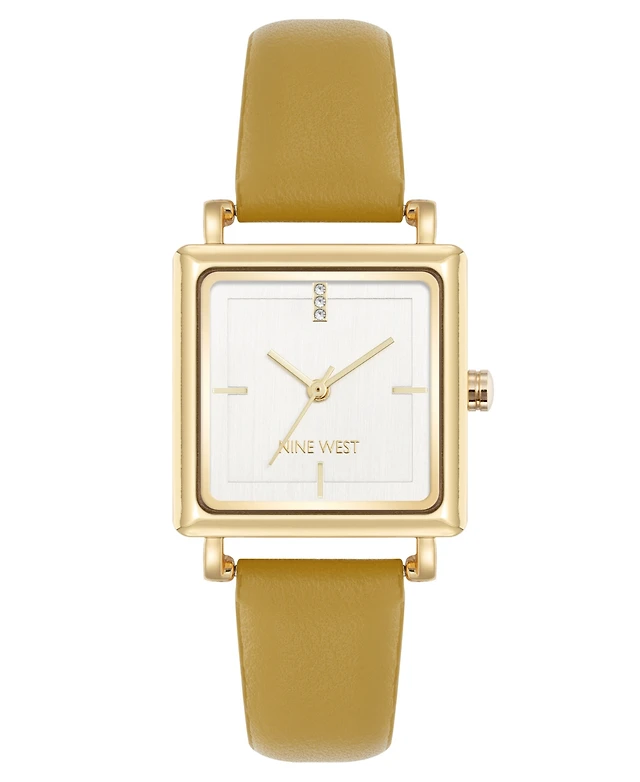 Nine West Women's Quartz Yellow Leather and Gold-Tone Watch, 29mm