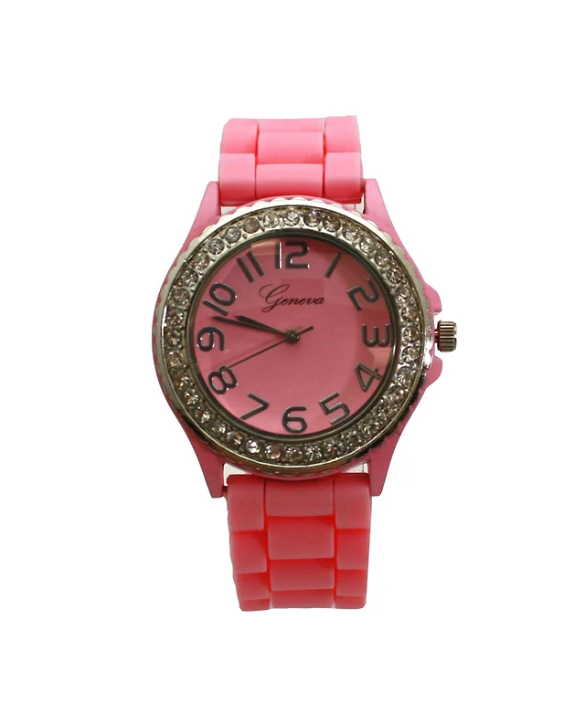 Olivia Pratt Coral Every Day Thin Band Silicone and Rhinestones Colorful Women Watch
