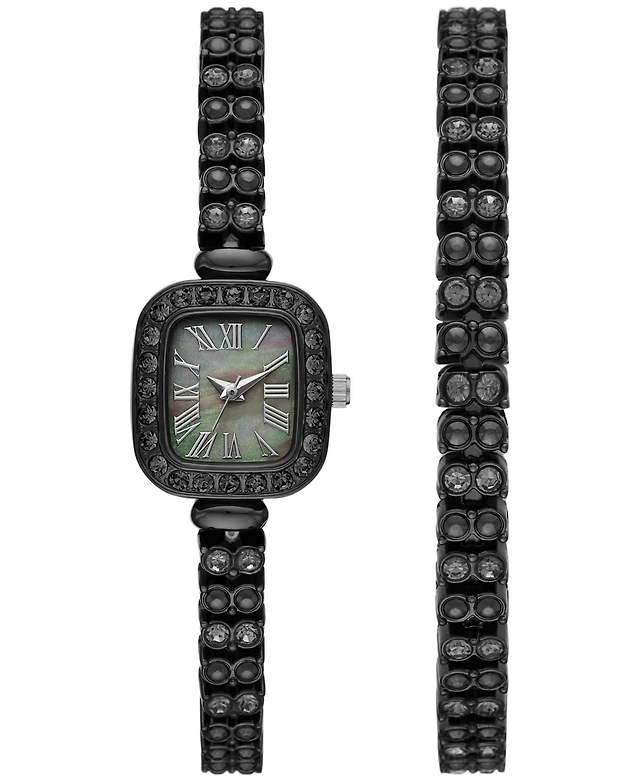 Anne Klein Women's Quartz Bold Coin Edge Bezel Black and Two-Tone Alloy Metal Watch, 32mm