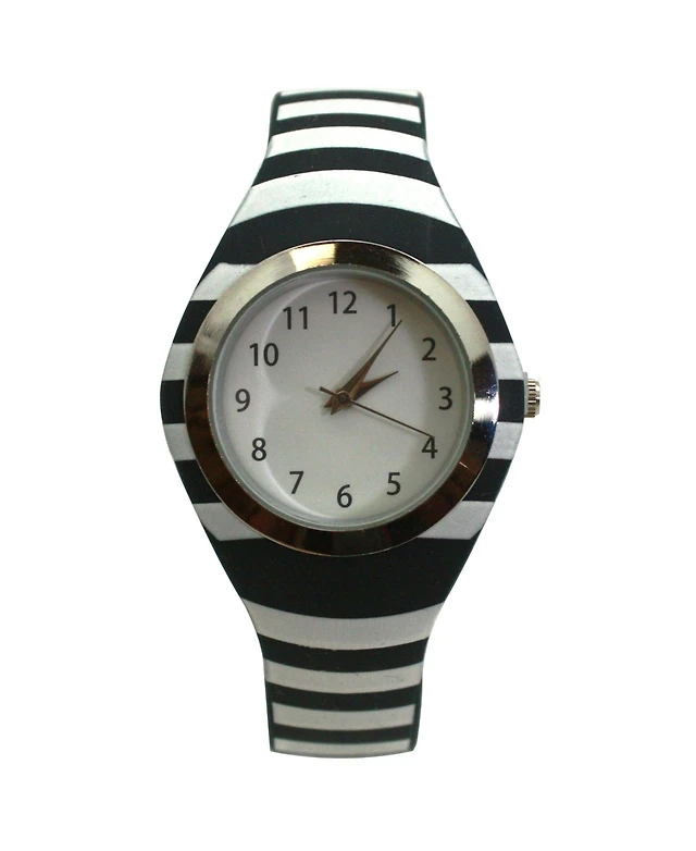 Olivia Pratt Black Stripped Silicone Band Women Watch