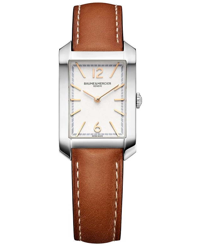 Peugeot Women's 34x24mm Tank Watch with Crystal Bezel Leather Strap