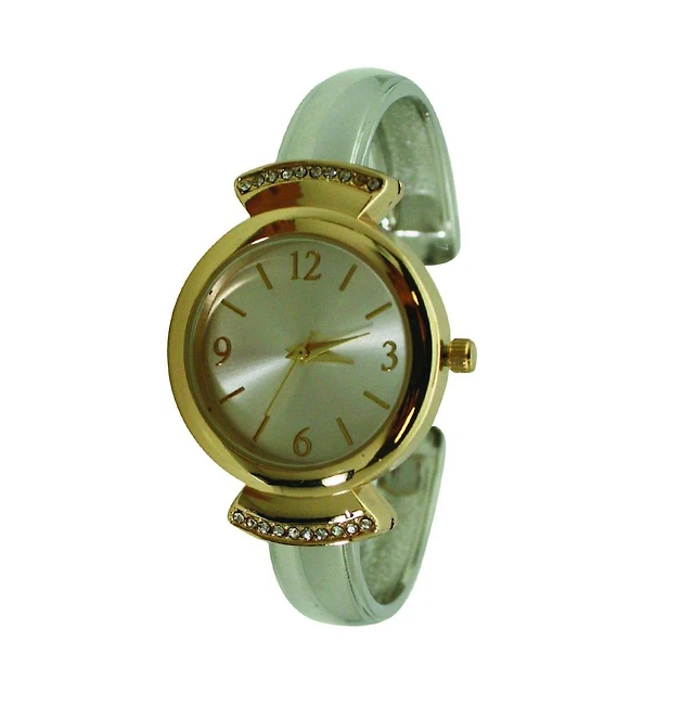 Two Tone Rhinestones And Pearl Tone Bangle Watch