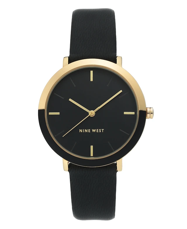 Jessica Carlye Women's Quartz Movement Black Leather Strap Analog Watch, 38mm with Hair Pin Set