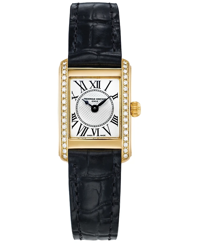 Frederique Constant Women's Swiss Classic Carree Diamond (1/20 ct. t.w.) Black Leather Strap Watch 23mm