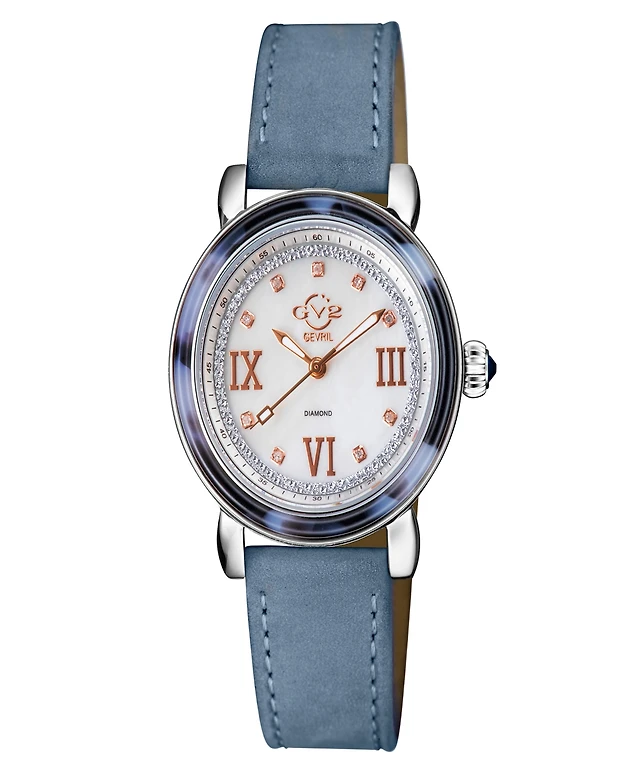 GV2 by Gevril Women's Palermo Swiss Quartz Blue Leather Watch 35mm