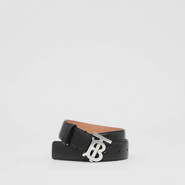 Monogram Motif Leather Belt in Black/palladium Grey - Women | Burberry® Official