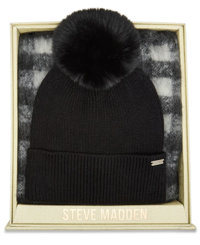 Steve Madden Women's Embellished Beanie and Knit Scarf Holiday Gift Set, 2-Piece