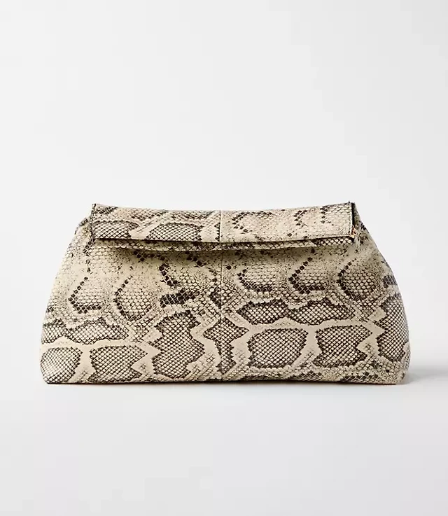 LOFT Versa Snake Print Leather Oversized Clutch Bag