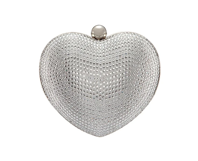 Nina Amorie Crystal Embellished Heart Minaudiere Clutch