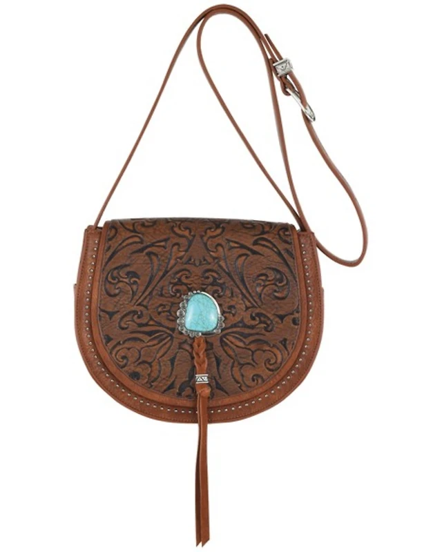 American West Women's Southwestern Tapestry Fringe Saddle Crossbody