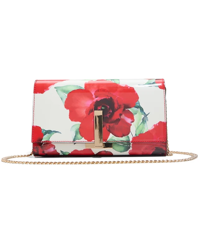 Nina Crystal Flower Embellished Patent Satchel Bag