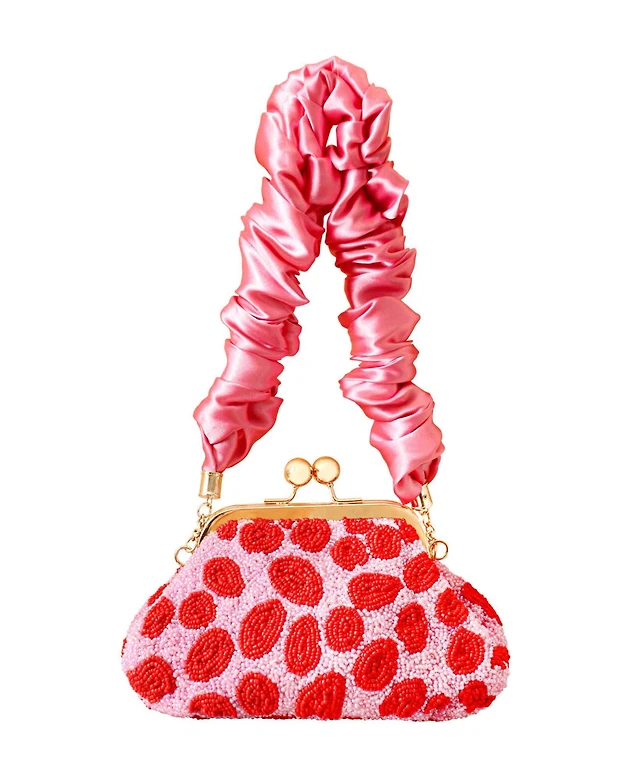 Arnoldi Daisy Hand-beaded Clutch Bag In Pink & Red