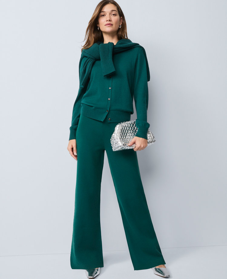 Ann Taylor Weekend Collection Mixed Stitch Wide Leg Sweater Pant Winter White Women's