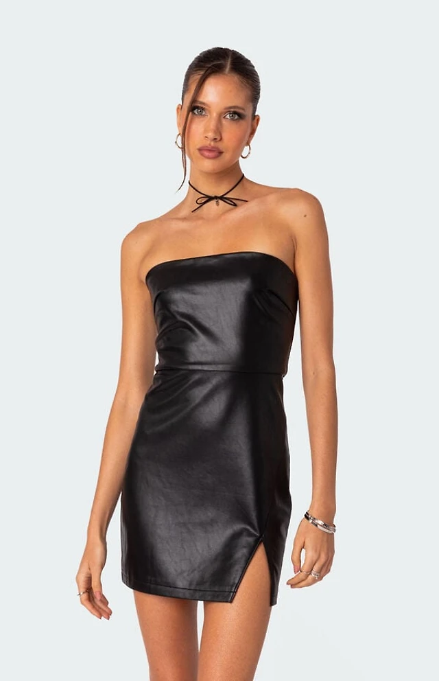 Edikted Fiia Lace Up Faux Leather Mini Dress