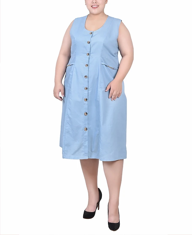 Ny Collection Plus Long Roll Tab Sleeve Dobby Dress