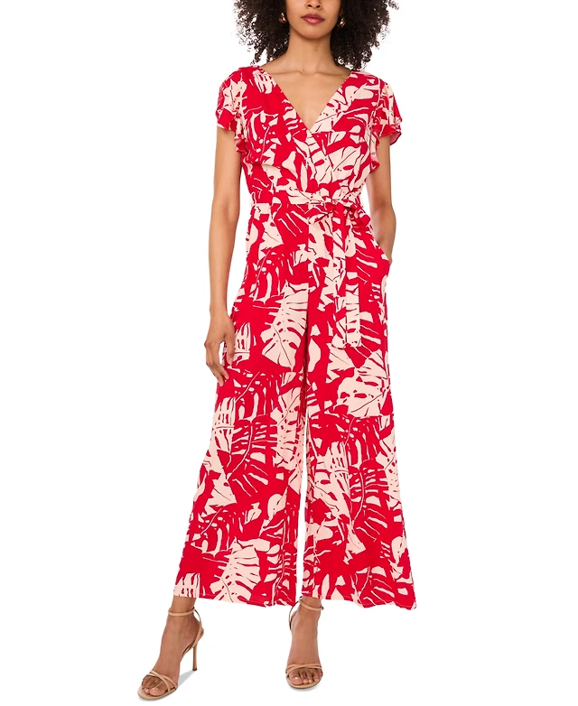 Sam & Jess Women's Printed Tie-Waist Flutter-Sleeve V-Neck Jumpsuit