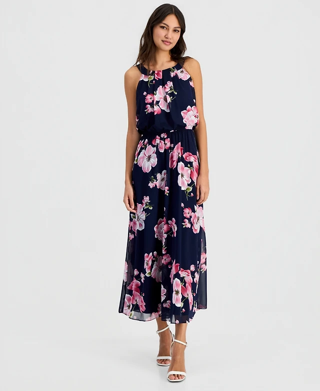 Taylor Plus Floral-Print Chiffon A-Line Midi Dress