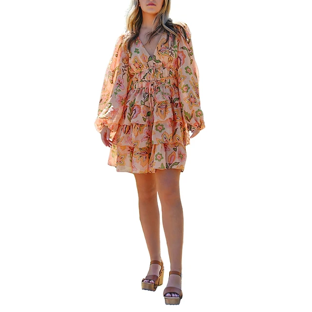 CeCe Women's Floral Ruffle-Sleeve Flounce-Hem Dress