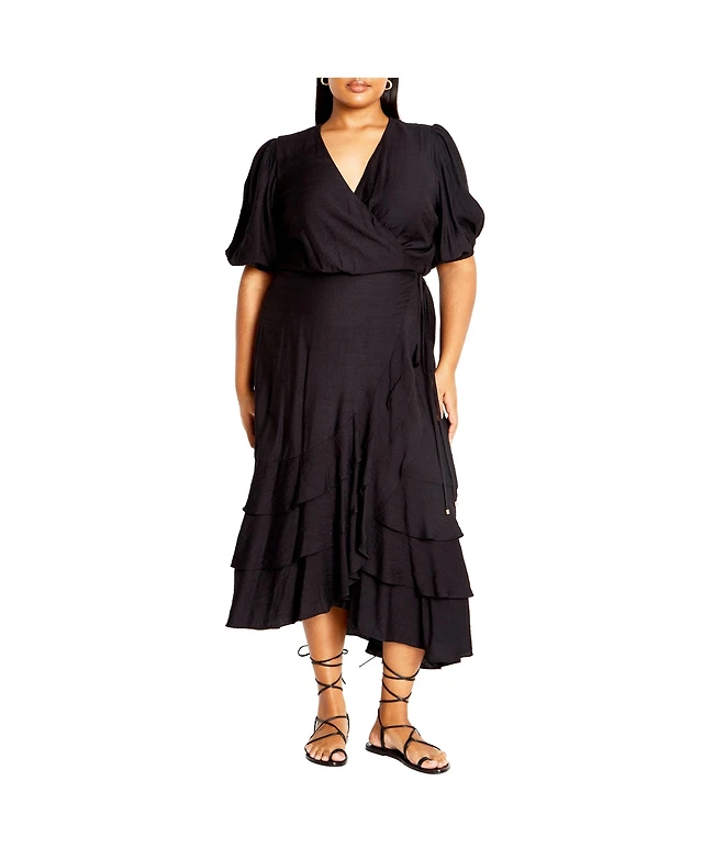 City Chic Plus Ana Tie Maxi Tiered Dress