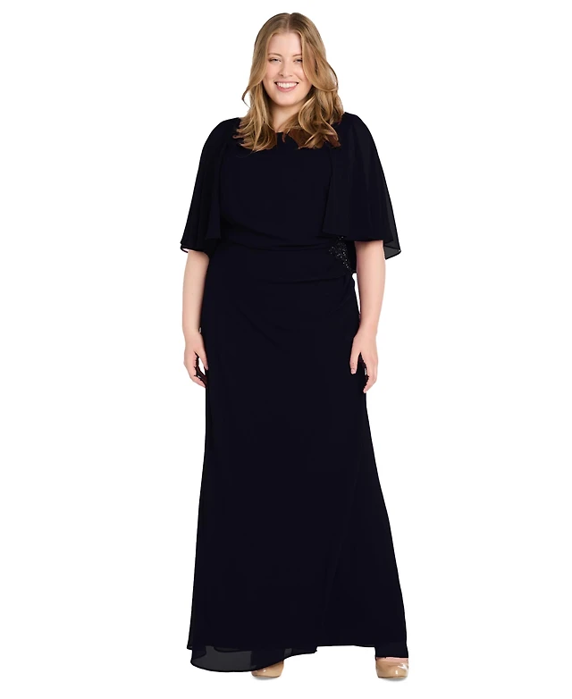 Adrianna Papell Women's Beaded Cape V-Neck Long Gown